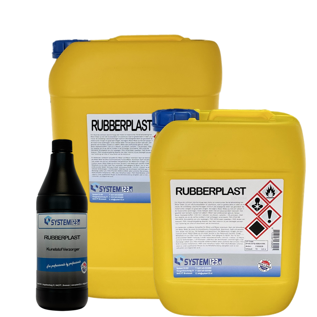 Speciaal voor autobanden en rubbers. Brengt de originele kleur terug van autobanden, deur en raamrubbers en rubbermatten. Rubberplast met een sprayer opspuiten. Indien de behandelde delen moeten glimmen, dan Rubberplast niet nawrijven.